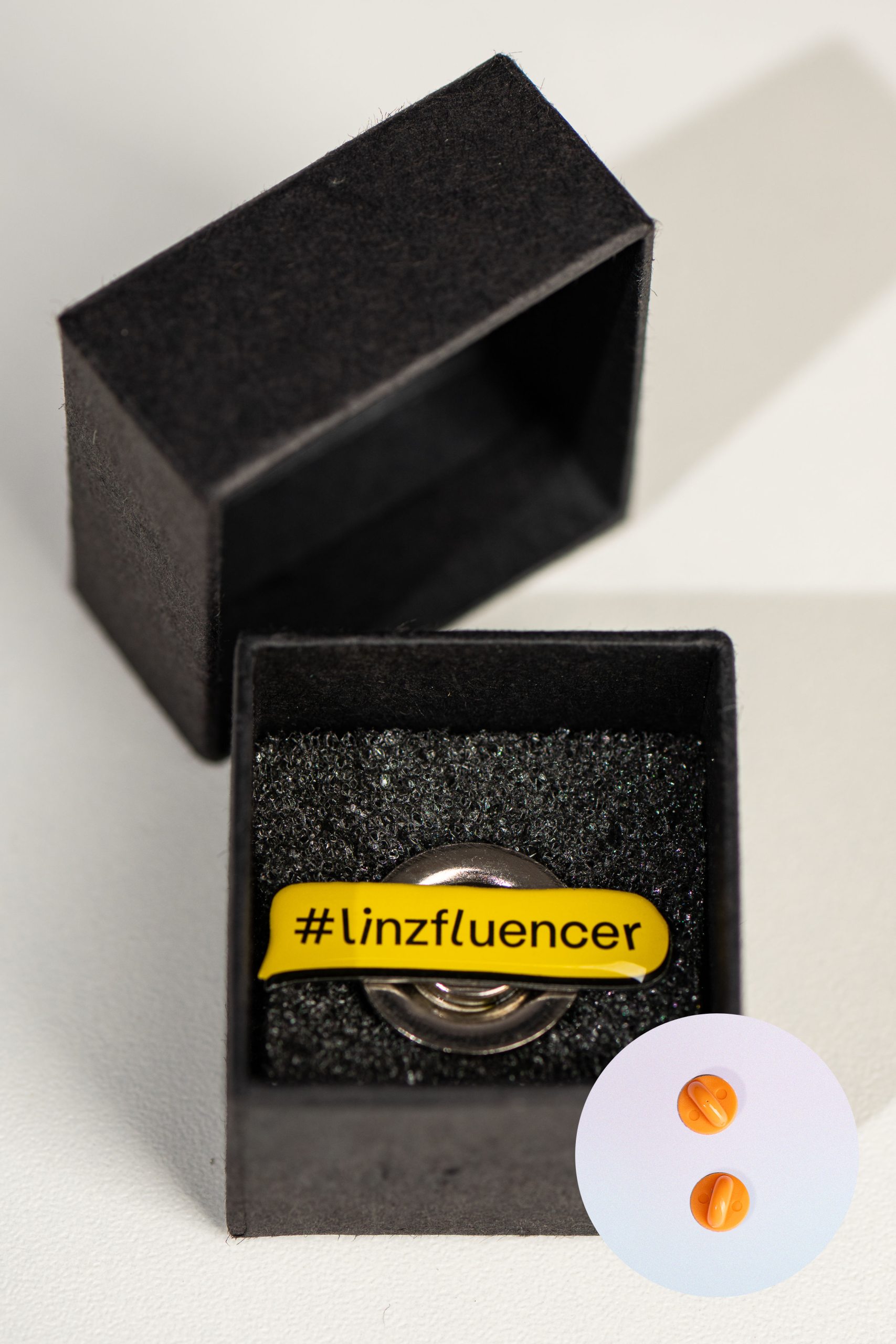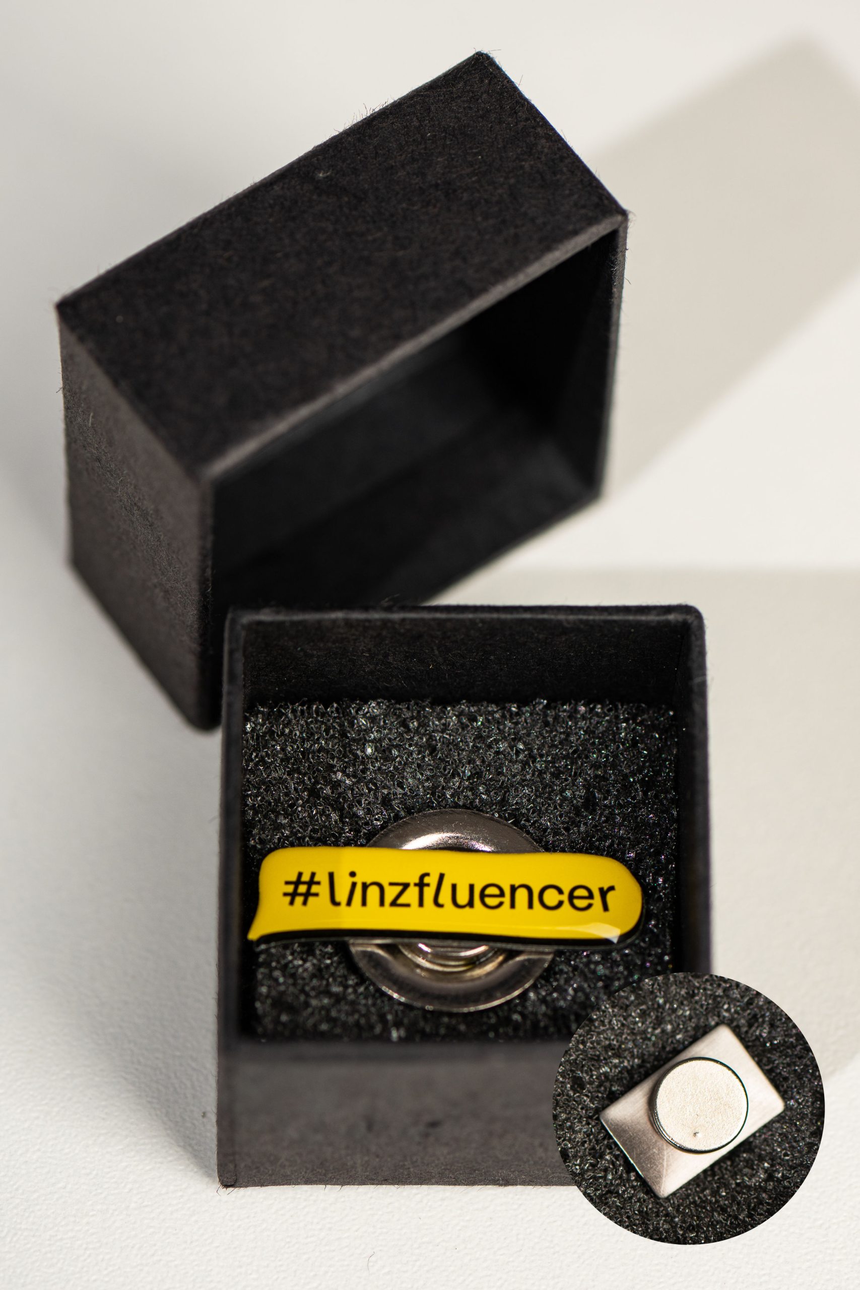 Damit der Pin dort bleibt, wo er hingehört, bieten wir dir verschiedene Verschlusssysteme an. Besonders unser Magnetverschluss ist ideal für hochwertige Kleidung, da er keine Löcher im Stoff hinterlässt.