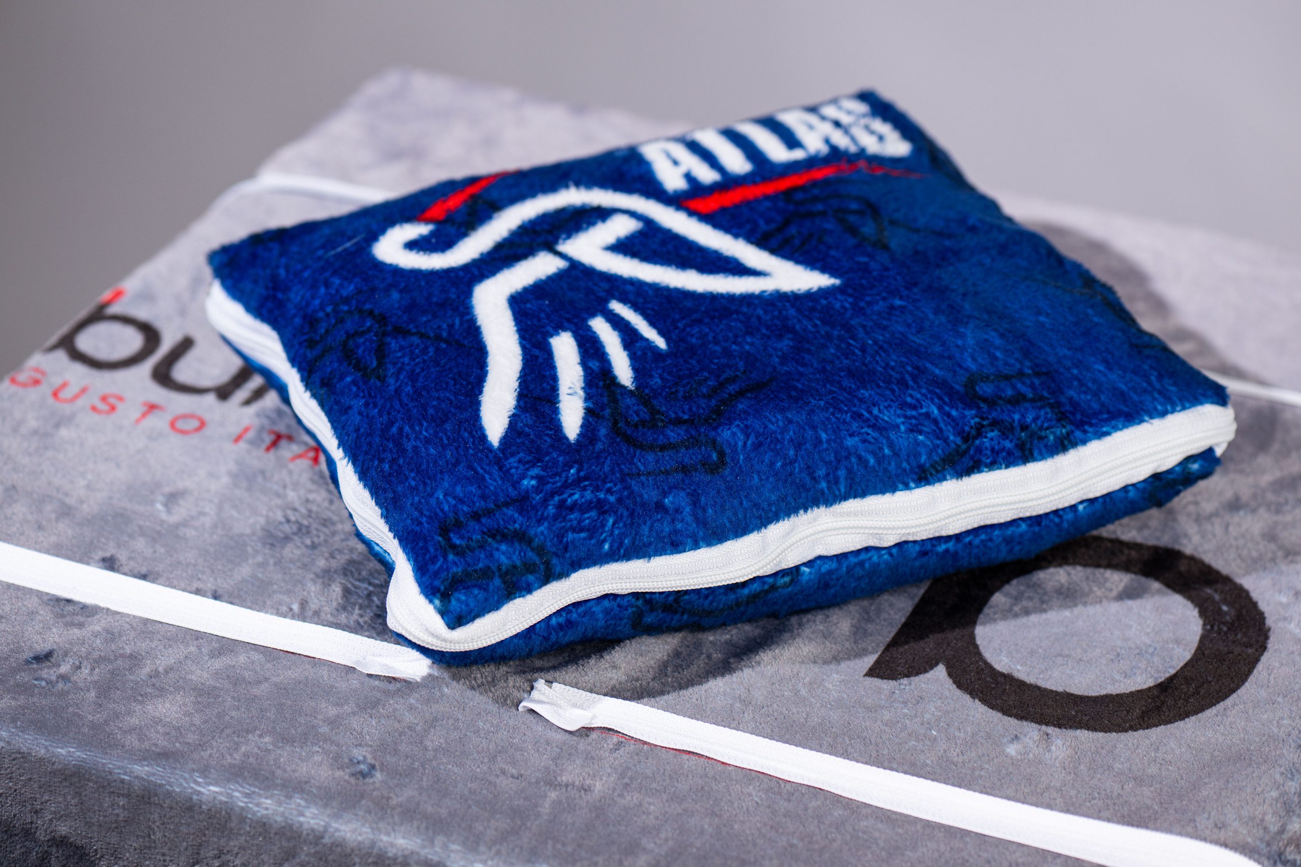 Vergiss kleine Logo-Sticks auf einer Ecke. Bei diesem 2in1-Set gibt es keine Grenzen – die gesamte Decke und die Polsterhülle sind deine Leinwand! Durch das spezialisierte Sublimationsverfahren wird die Farbe direkt in die Mikrofaser eingedampft.