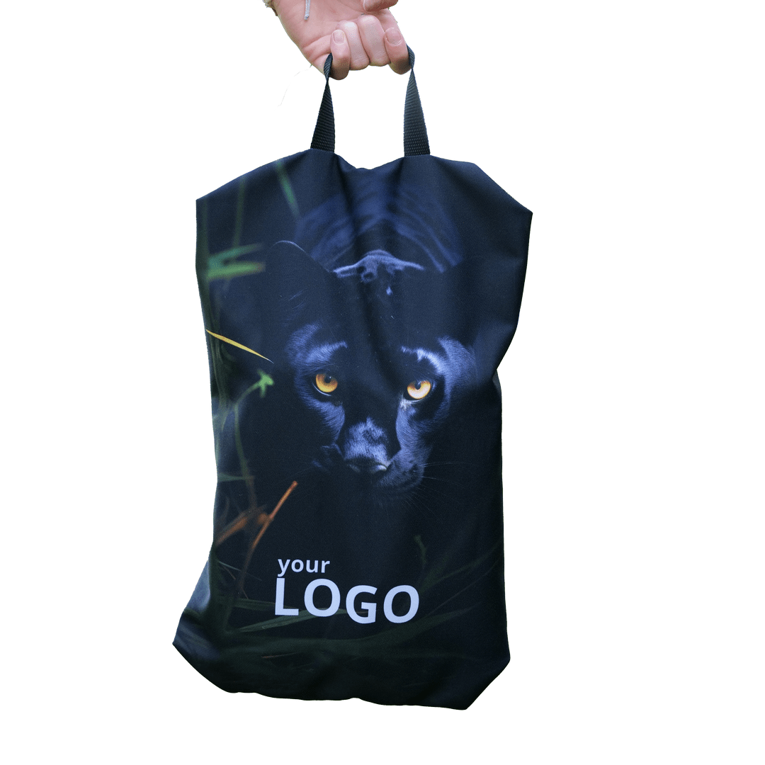 Full-Surface Branding: Vergiss kleine, aufgeklebte Logos. Die gesamte Tasche wird zum Imageträger. Wir realisieren deine exakten Unternehmensfarben, Verläufe und hochauflösende Werbebotschaften randlos und scharf.